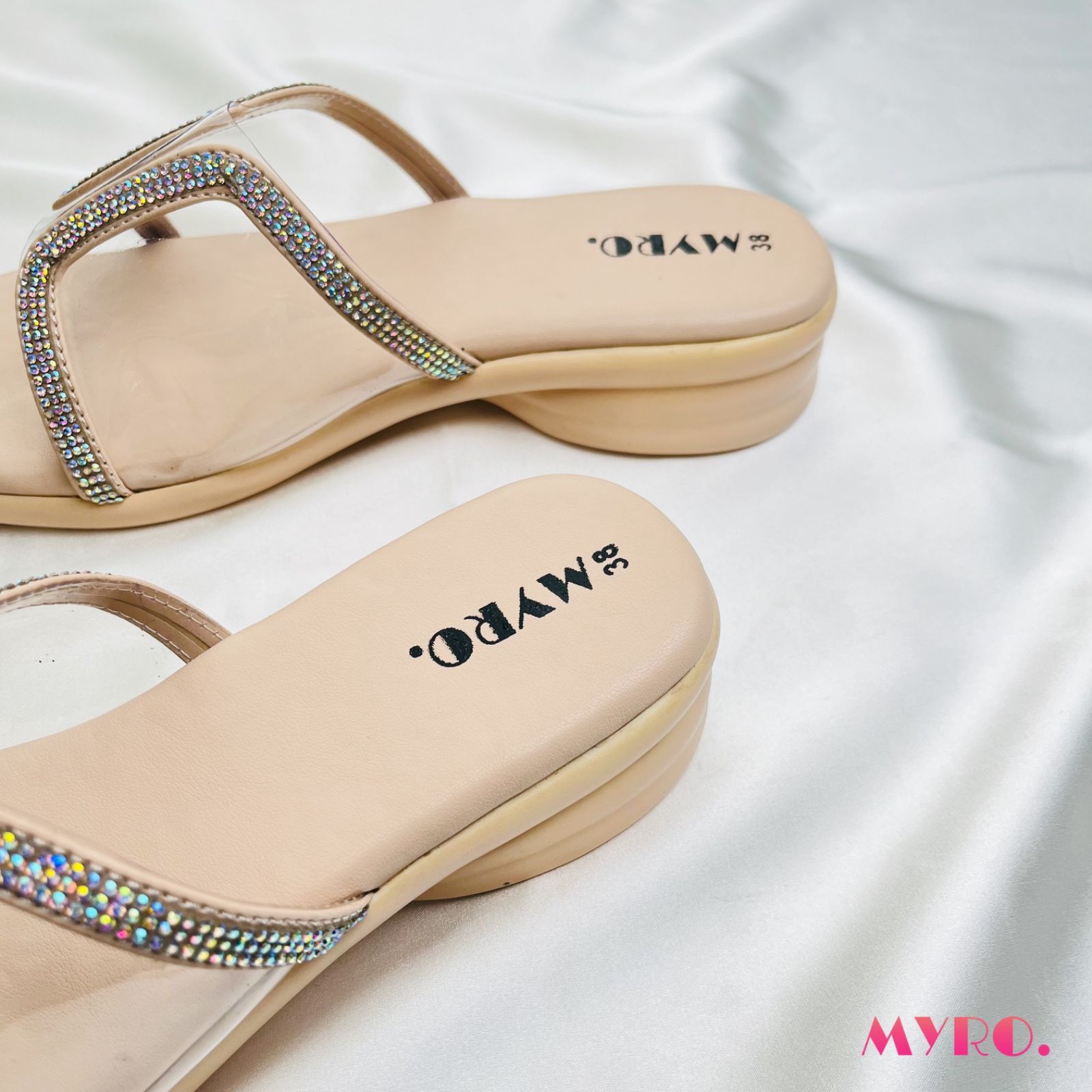 Myro Jenny White Rose Gold Low Heel