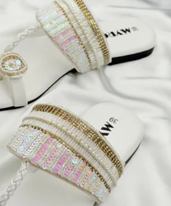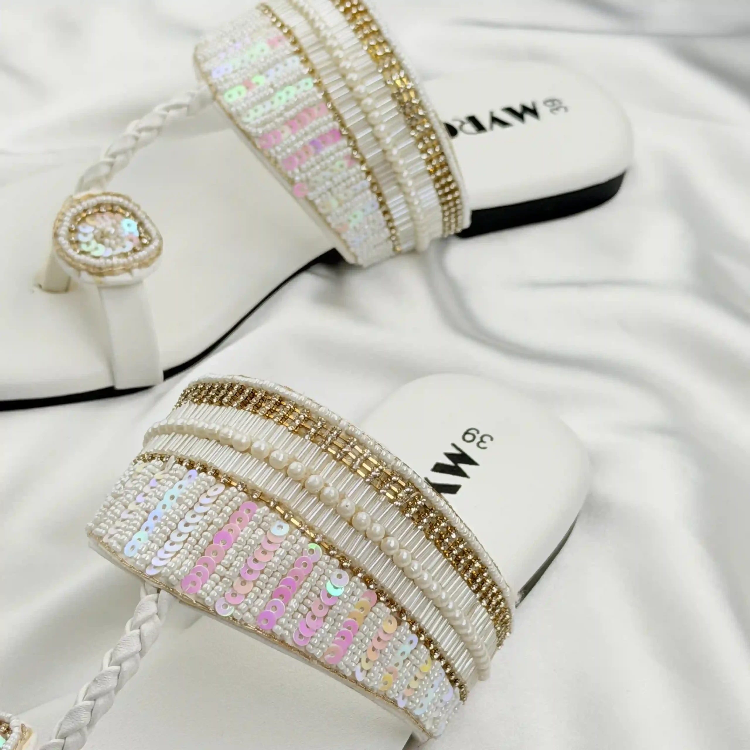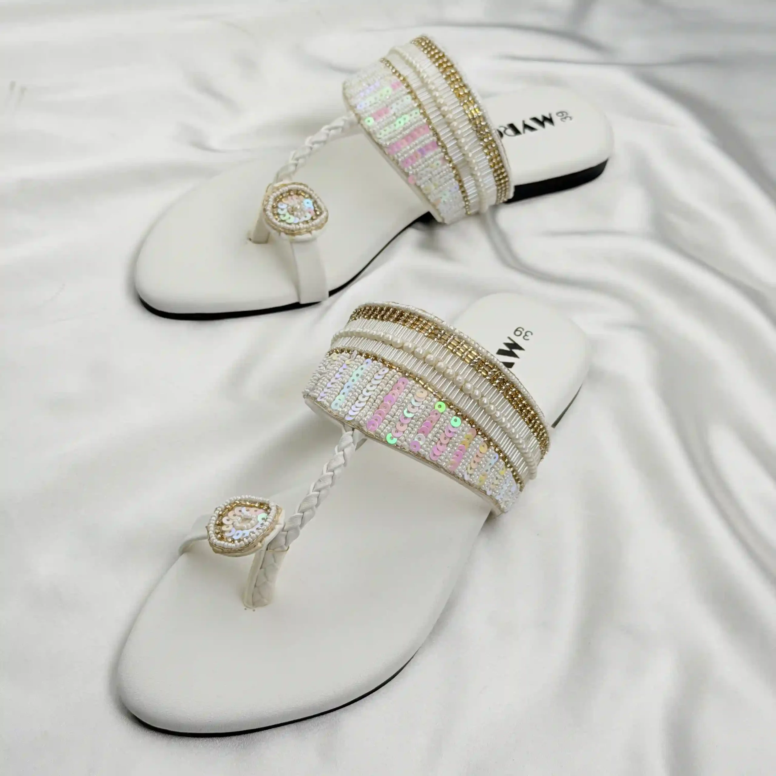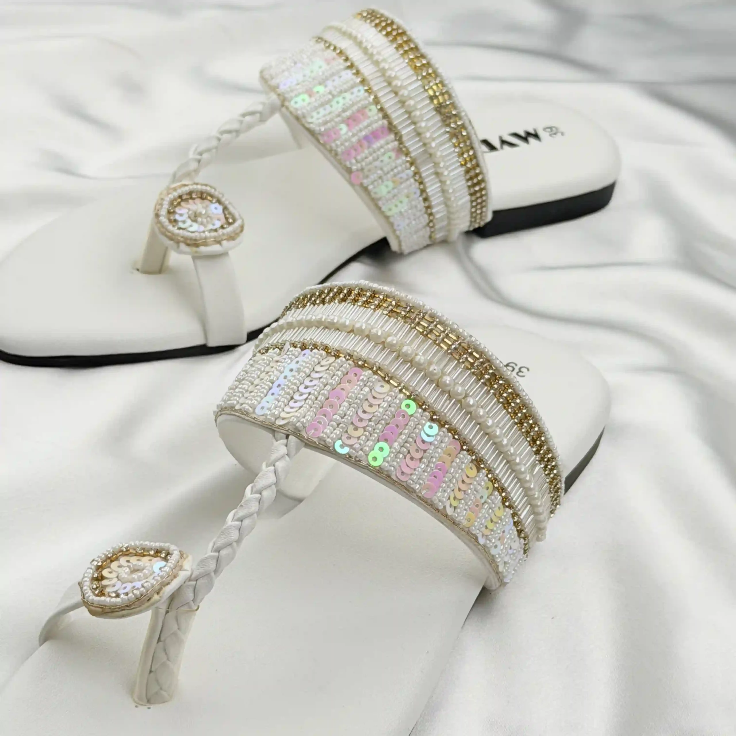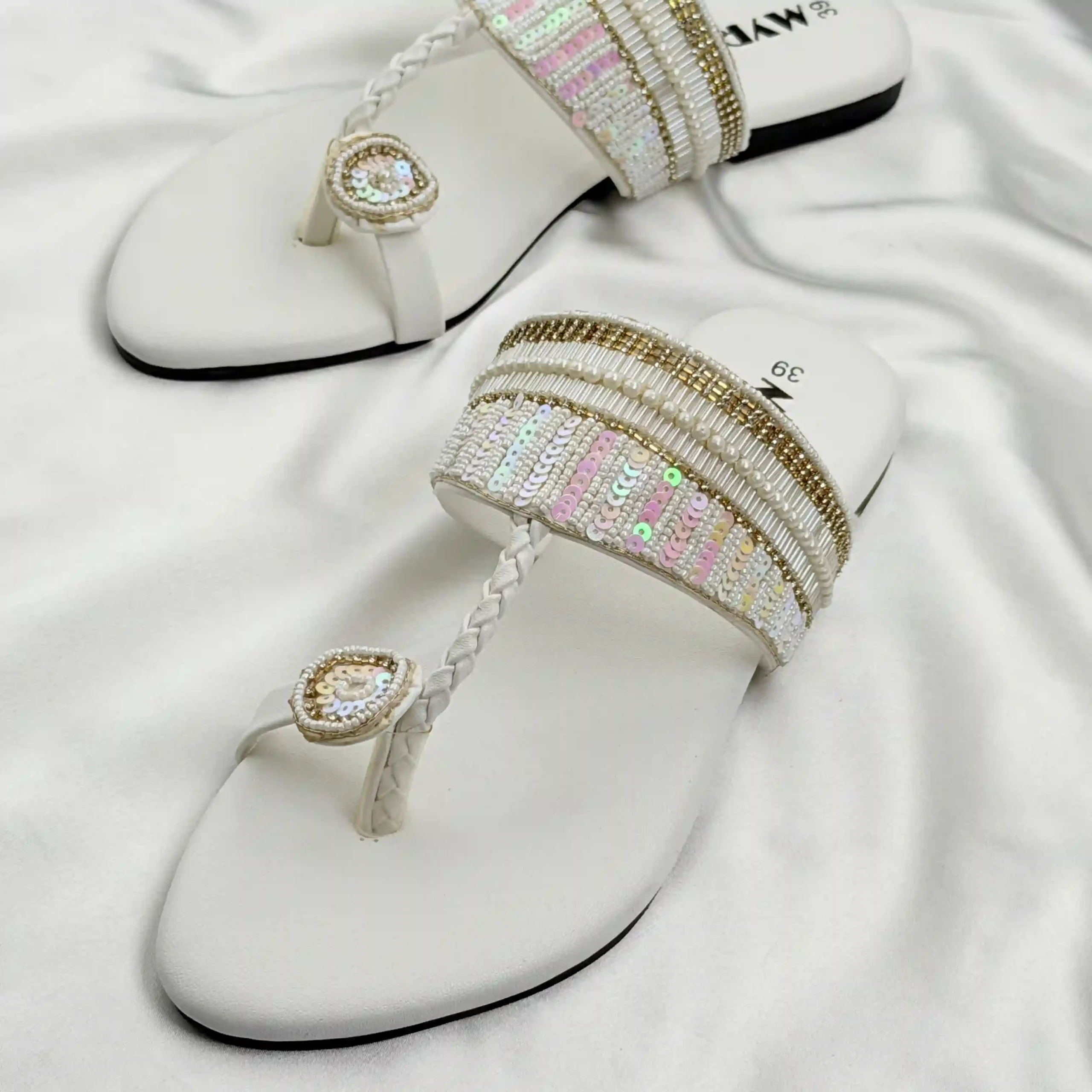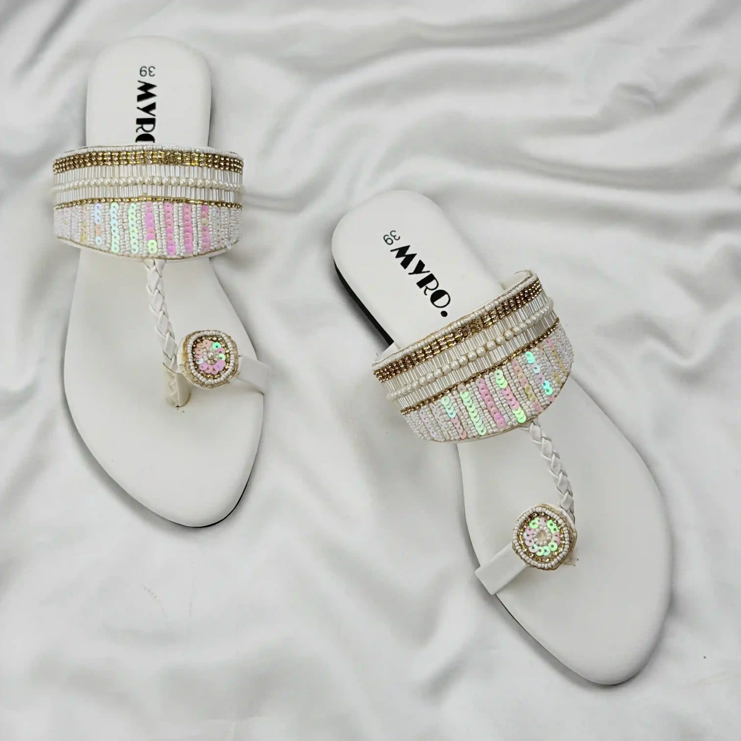 Myro Cream Gold Braided Thongs