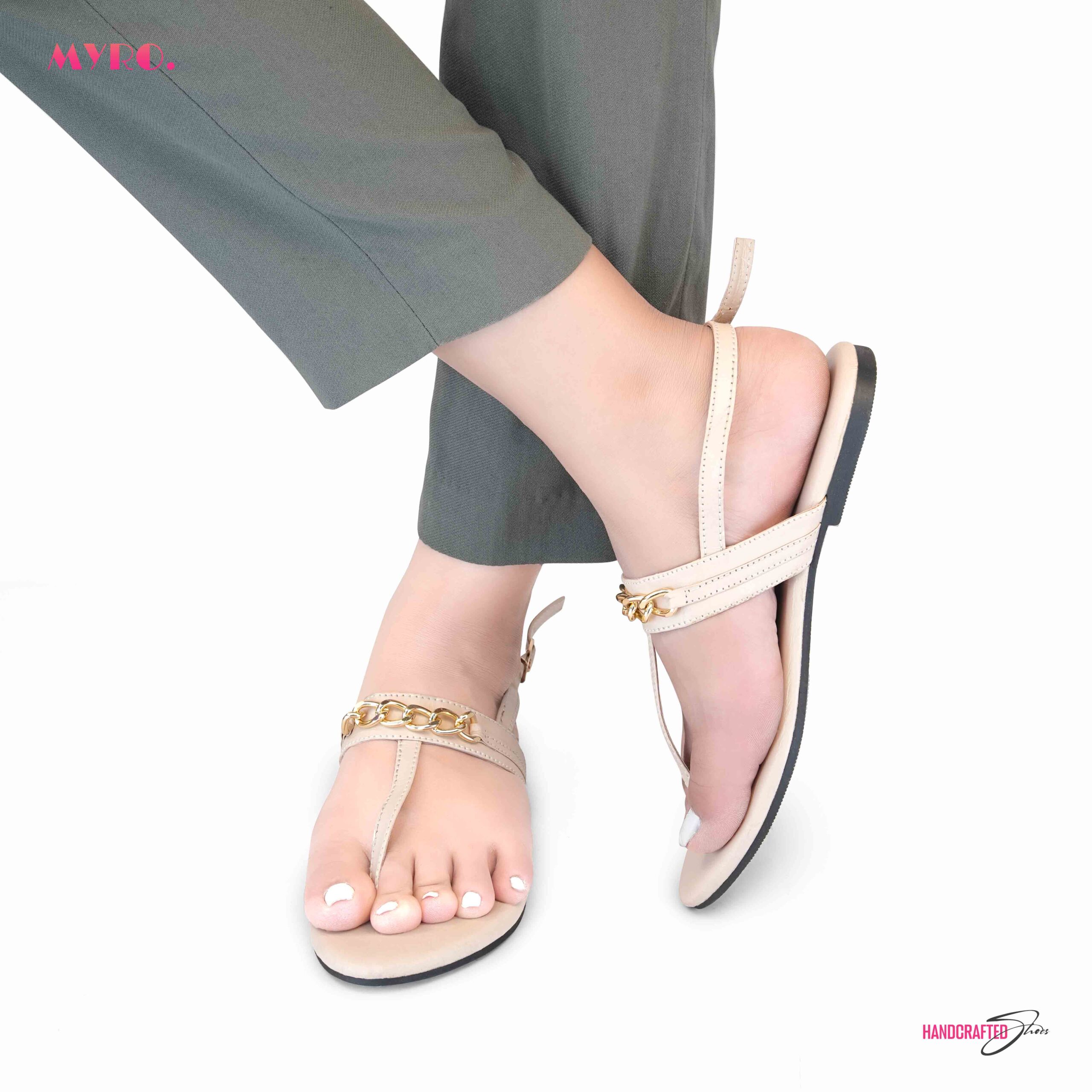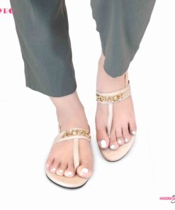MYRO Cream Chain Detailed Thongs
